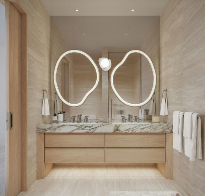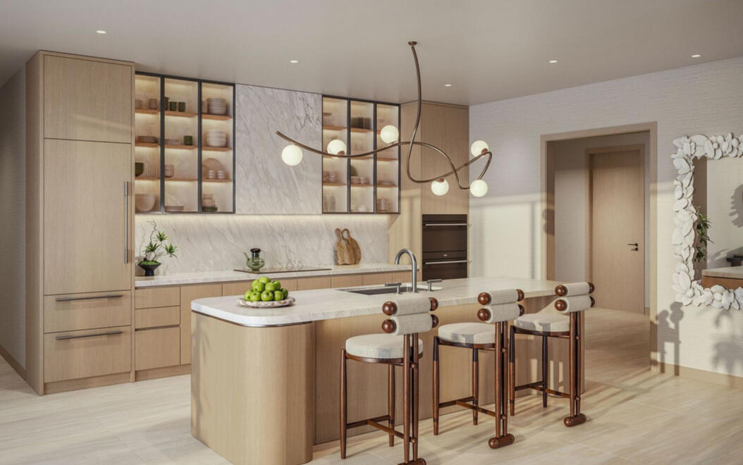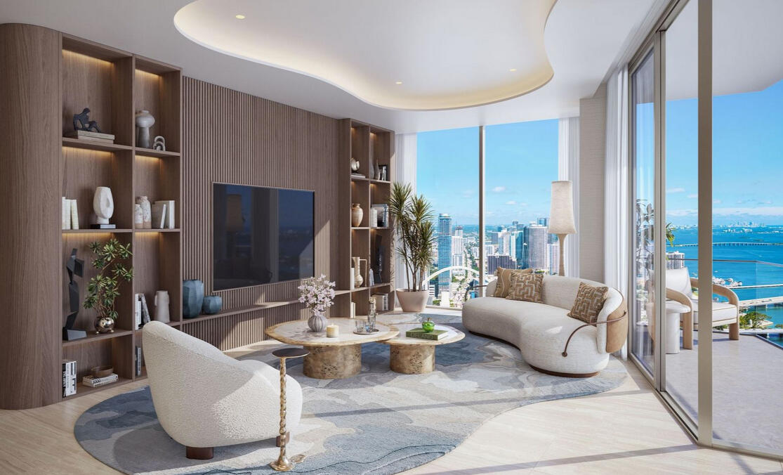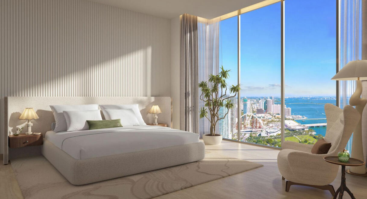 - Coleção D (andares 20 ao 47) – Estúdios e residências de 1 e 2 quartos, totalmente acabadas e mobiliadas*, com pé-direito de 9,6 pés- Residências D (andares 49 ao 75) – Residências de 1, 2 e 3 quartos, totalmente acabadas, com pé-direito de 10 pés, incluindo espaço de escritório com escritura- Todos os interiores residenciais são projetados pelo premiado estúdio de design de interiores Meyer Davis- Janelas do chão ao teto com vistas impressionantes da cidade, do skyline do Downtown, de Miami Beach e do Oceano Atlântico- Closets totalmente equipados em todas as residências, curados pela Meyer Davis- Pacote de iluminação contemporânea- Tecnologia de casa inteligente que oferece personalização fluida com apenas o toque de um botão